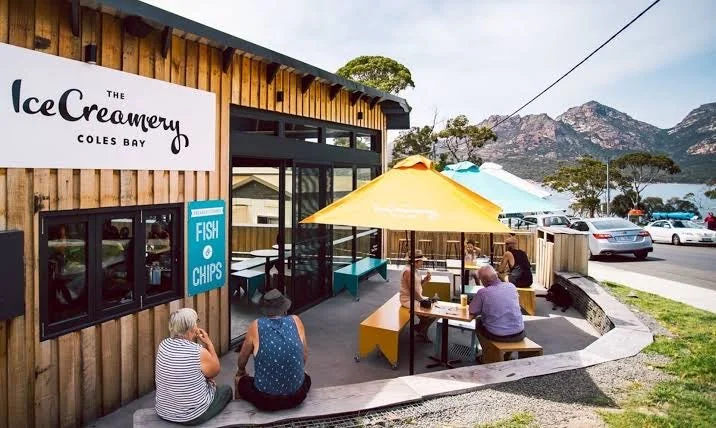 When I’m craving the ultimate seaside treat, there’s no place I’d rather go than Ice Creamery & Co. at Coles Bay, it’s my favourite little hideaway. Here, the magic lies in the perfect trio: scoops, seafood, and scenery. Nestled right on the edge of Freycinet, you can tuck into the best fish and chips and crispy, golden fish & chips made from local catch (like Trevalla and calamari), all while gazing up at the Hazards mountains rising above the bay. Then, just when you think it can’t get better, you grab a cone (or a sundae) from their 24-strong Tasmanian-made ice cream flavours. What more could you need from a seaside eatery?